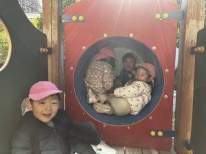 公園の遊具の中にみんなで入っています。 ぎゅうぎゅうにくっついて、この笑顔。 まるでみんなが発表会でやった、 「てぶくろ...2026.2.5