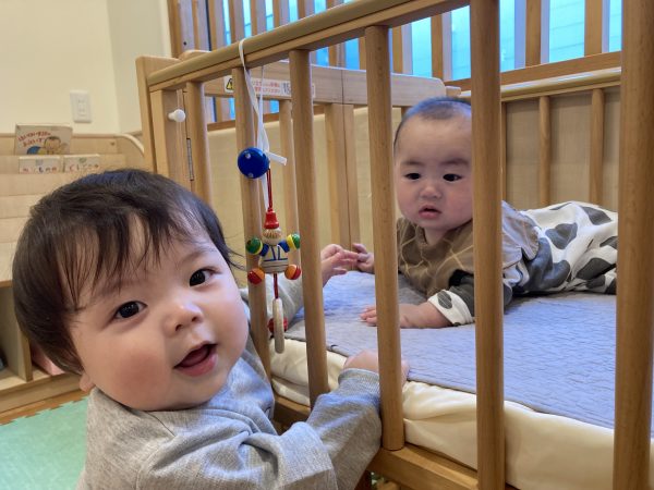 今日は、カラフルな袋を繋ぎわせたトンネルを作って遊びました! 保育者が上下に揺らすと、不思議そうに目でおったり「一緒に揺...2026.4.20
