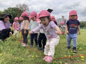今日は公園にお散歩へ… 探索の前に縄跳びを誘うと、両足でジャンプをしたり 足をあげて飛び越えたりと繰り返し楽しむ姿が!!...2026.4.15