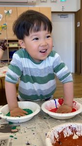 今日はお部屋で絵の具遊びをしました! 昨日の製作で絵の具を使った時に色が混ざると違う色になることを発見した子どもたち。 ...2026.4.15