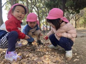 みんなで一生懸命オバケや鬼から逃げたり、落ち葉の中にいないか探して遊ぶのです…‼