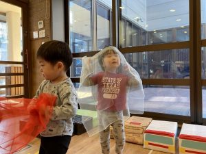 スカーフを使ったリトミックでは
