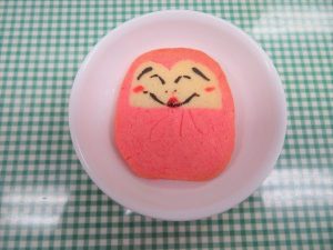 今日のおやつは、にっこりと笑っているだるまさんをクッキーで再現しました![]()