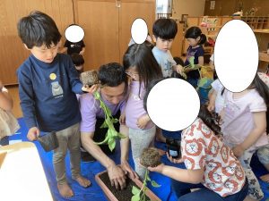 最後は、苗を丁寧に入れ、みんなで優しく土を被せていきました![]()