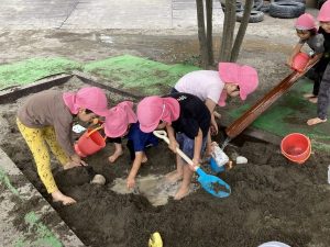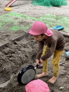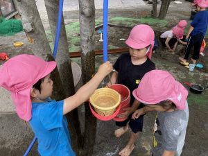 今日は園庭にて、どろんこ遊びを楽しみました!