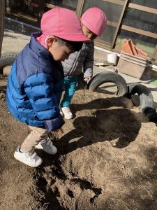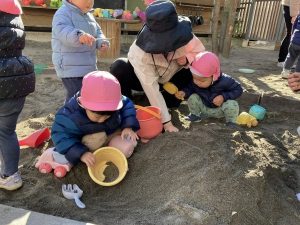 今日は園庭で砂遊びをしました。