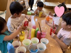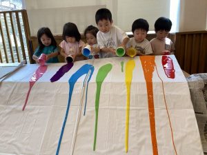 絵の具を垂らしていたお友だちも、見ていたお友だちも「うわー!きれーい!!」とうっとりでした♡