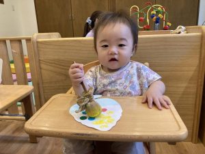 保育者と一緒にぺったん!とたくさんシロップをかけることができました!