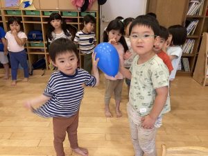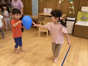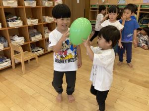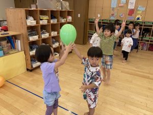 先日ひまわり組と一緒に風船運びゲームを行いました!