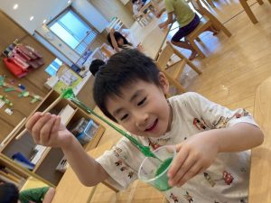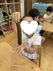 こねたり、伸ばしたり、指先を沢山使って楽しむことができました(^^