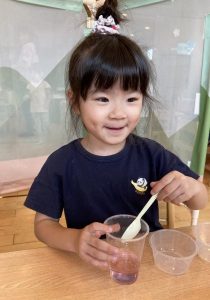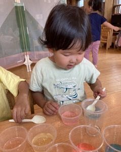 少しずつ色を注いでみたり、スプーンですくって混ぜ混ぜ~♬