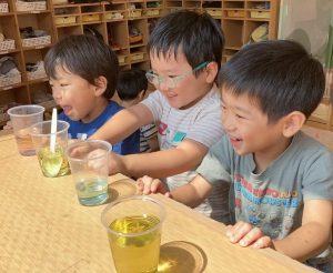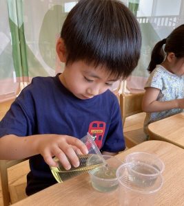 先日ひまわり組で色水遊びをしました~(^▽^)/
