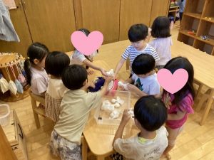 子どもたちの提案からみんなでてるてる坊主を作る事に!!