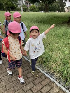 そろそろ夏が終わり秋が近づいて来るので、秋を探して園周辺散歩へ行きました。