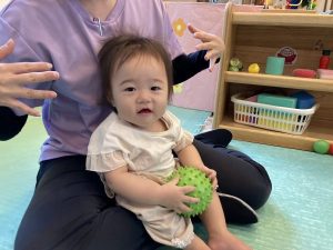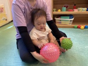 保育者や友だちと一緒に全身を使ってボールを追いかけたり、手先を使ってボールを掴んだり、投げたりして楽しく遊びました♡