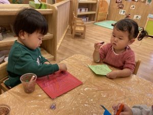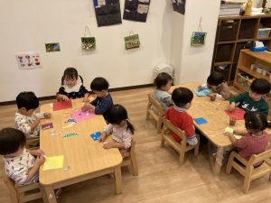終わると次のお友だちと「交代!」と言って譲り合いながら製作活動を楽しんでいました!