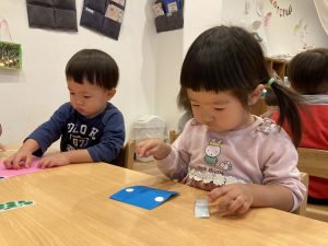 終わると次のお友だちと「交代!」と言って譲り合いながら製作活動を楽しんでいました!