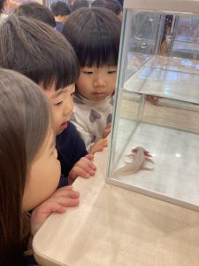 ひめせみえびやウーパールーパーなどを真剣に観察し楽しんでいました。