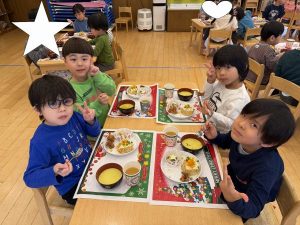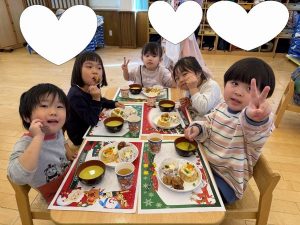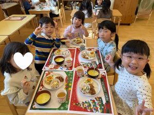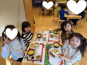 食事では、クリスマスの献立でまた大喜びの子どもたち♡