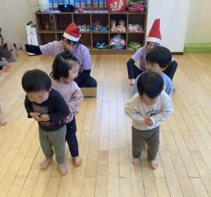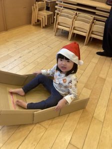 サンタクロース、トナカイさんごっこをして楽しみましたよ。