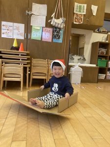 そりに乗ってサンタさんになりきりました!