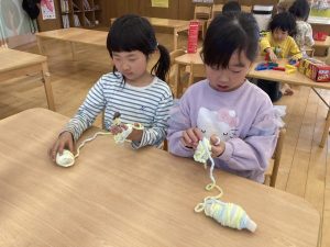 室内では編み物、おままごと、ゲーム遊びなど、自分の遊びたいものを選び、
