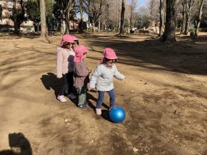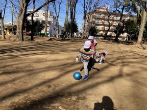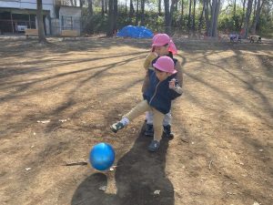 友だちに向けて真っ直ぐ蹴ることができ、大喜び♡