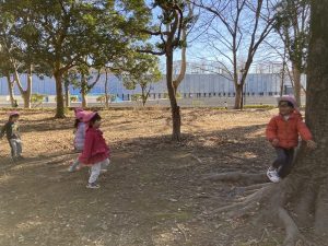 こちらではみんなでだるまさんが転んだをやっているお友だちが!