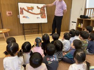保育者からのプレゼントは「三匹のヤギのがらがらどん」のパネルシアター!