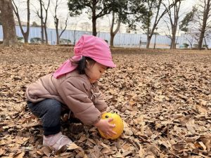 散歩先に到着し、ボールを転がしたり、保育者や友だちと一緒に走ったり、探索活動を楽しんだりして遊びました!!