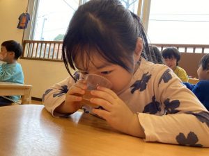 先日、食育で野菜から抽出した色水を何の野菜か当てるクイズをしました!