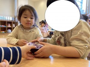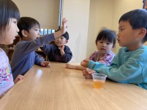 「甘いリンゴのにおいがする」「オリーブのにおいがする」と感じた事を友だちと伝え合っていました!