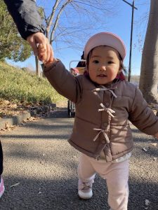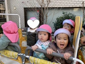 保育園を出発する前に保育者が「出発します!えいえいおー!」と言うと、子どもたちも保育者に続いて「お~!!!」と言う姿が見られました♪