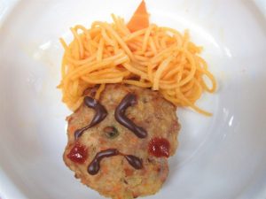 鬼さんハンバーグは、ハンバーグで顔を作り、