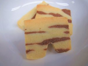 ココア生地とプレーン生地を使い、鬼のパンツの柄を表現しています。