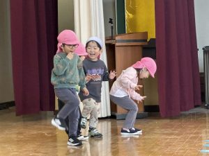 ステージの上に立つと、緊張する気持ちもありながらお友だちと一緒に楽しみながら演じていました♩