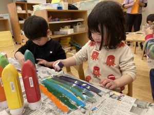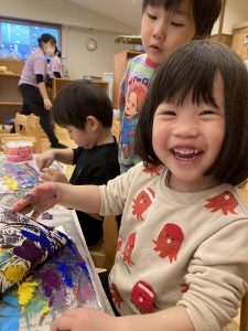 「何色にしようかなぁ」といろいろ考えながらどんな作品にしたいか考えながら絵の具を広げていました☆