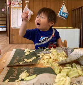 今日は食育で『キャベツに触れよう!』のテーマで行いました!