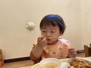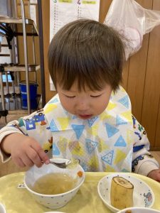 給食の時にはスープに入って登場したキャベツをモリモリ食べ進める子どもたちです!