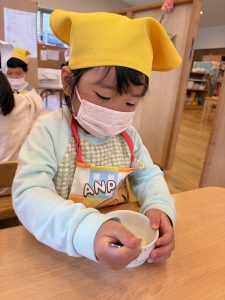 朝から「クッキングする~?」と楽しみにする様子のわかば組さん☆