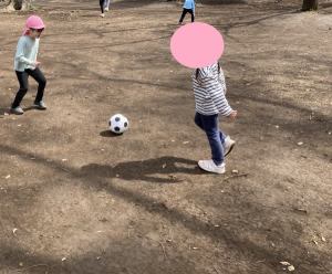 広場では、みんなで鬼ごっこをしたり、ばら組の子どもたちのリクエストでサッカーと大繩跳びをしました。