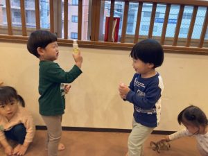 「やった~!」「おっきくなった~!」と進級したことや、友だちが増えたことに