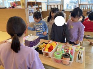 どんなものを使って何を作ろうか考えて廃材を選んでいました!