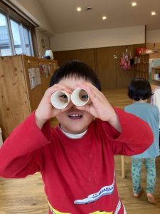 トイレットペーパーの芯を使って双眼鏡を作ったり、