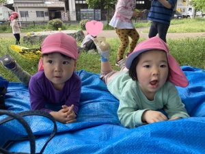レジャーシートの上ではのんびり休憩するお友だちも。