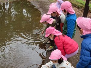 大きな水たまりを見つけてみんなで観察していました!