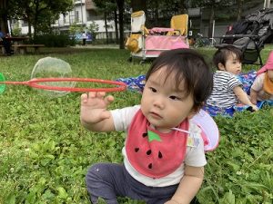 草が湿っていると、子どもたちの大好きなしゃぼん玉が
