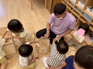 保育者と一緒に大きなお家を作りました!