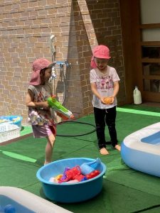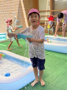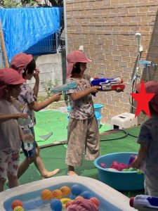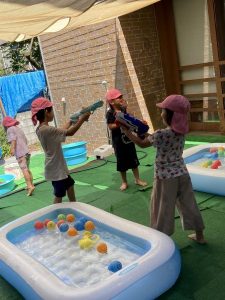 今日は水鉄砲などを使ってみんなで大盛り上がり!