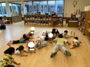 先生の話をよく聞いて楽しそうに参加していました。